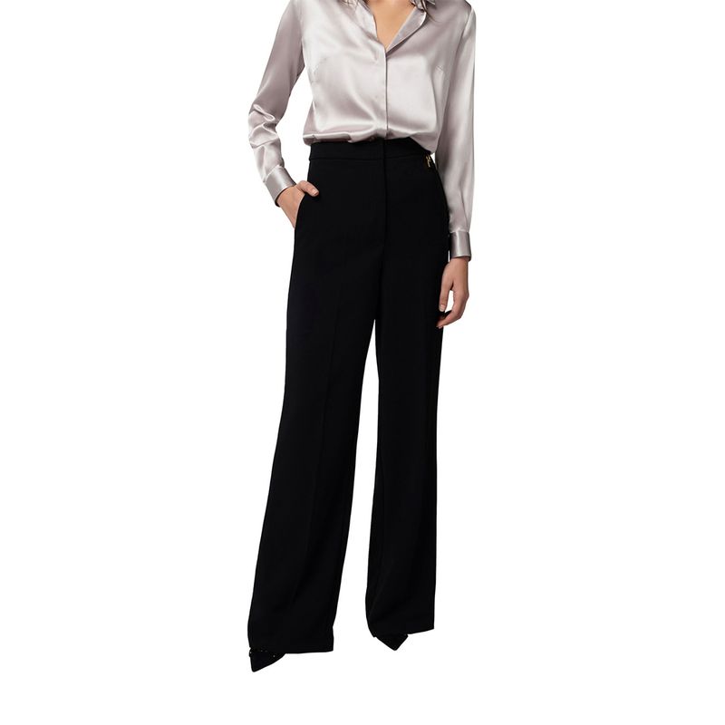 Pantalón negro de línea limpia con silueta estilizada y ajuste perfecto
