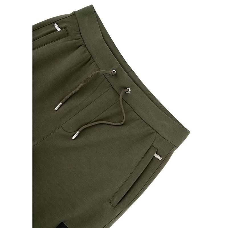 Este pantalón jogger de Karl Lagerfeld combina estilo y funcionalidad. Confeccionado en una mezcla de materiales de alta calidad, ofrece una textura suave y elástica que se adapta al movimiento. Su diseño incluye cintura ajustable con cordón, bolsillos frontales con cierre en color negro contrastante y puños acanalados que aportan un acabado moderno. Perfecto para crear looks casuales con un toque distintivo.