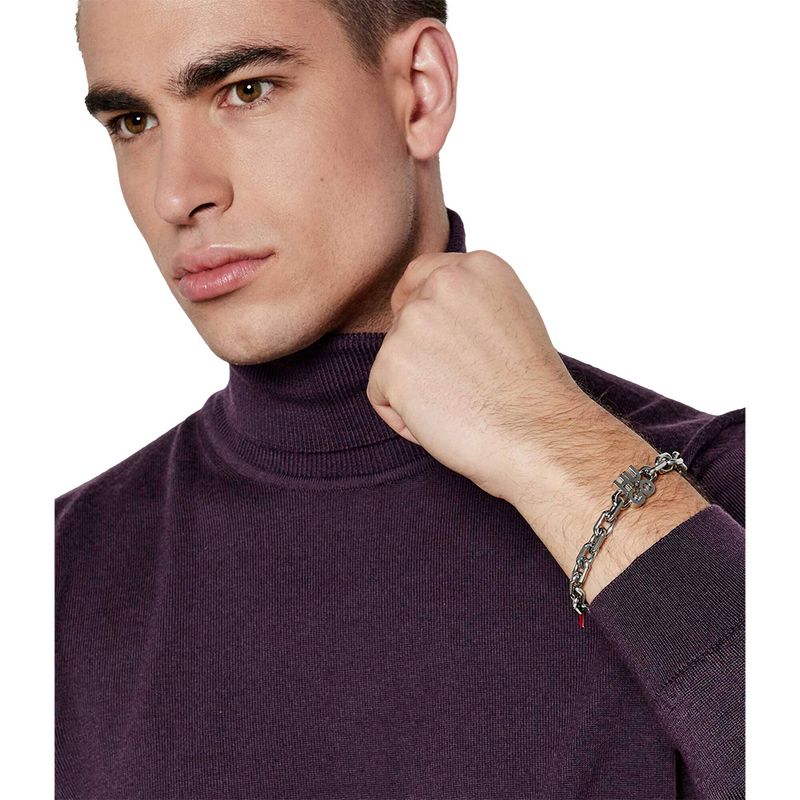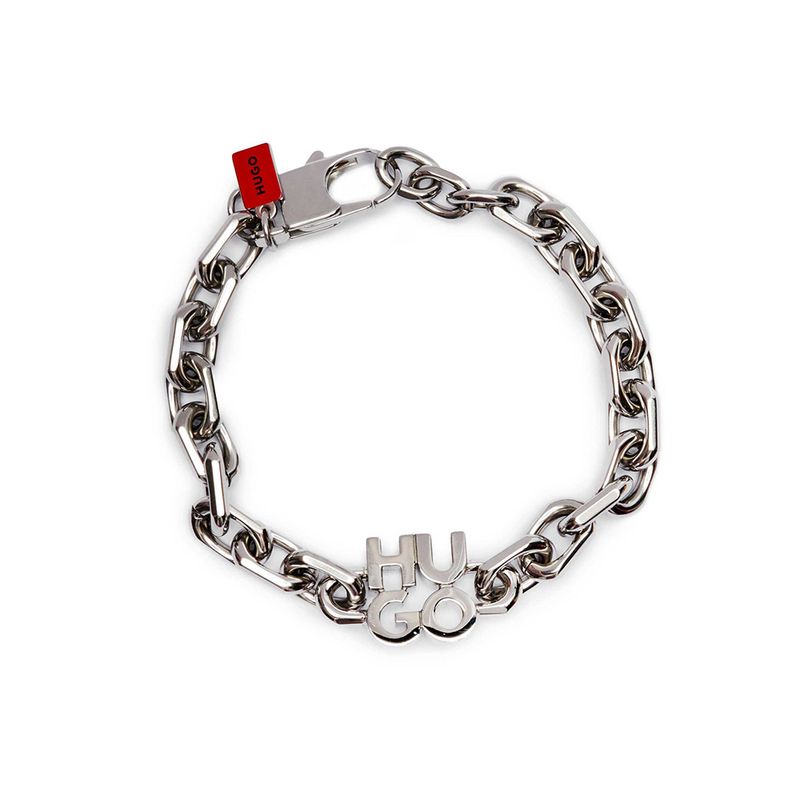Pulsera Hugo de eslabones con logotipo metálico para hombre
