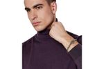 Pulsera metálica de acabado brillante con diseño moderno y distintivo.