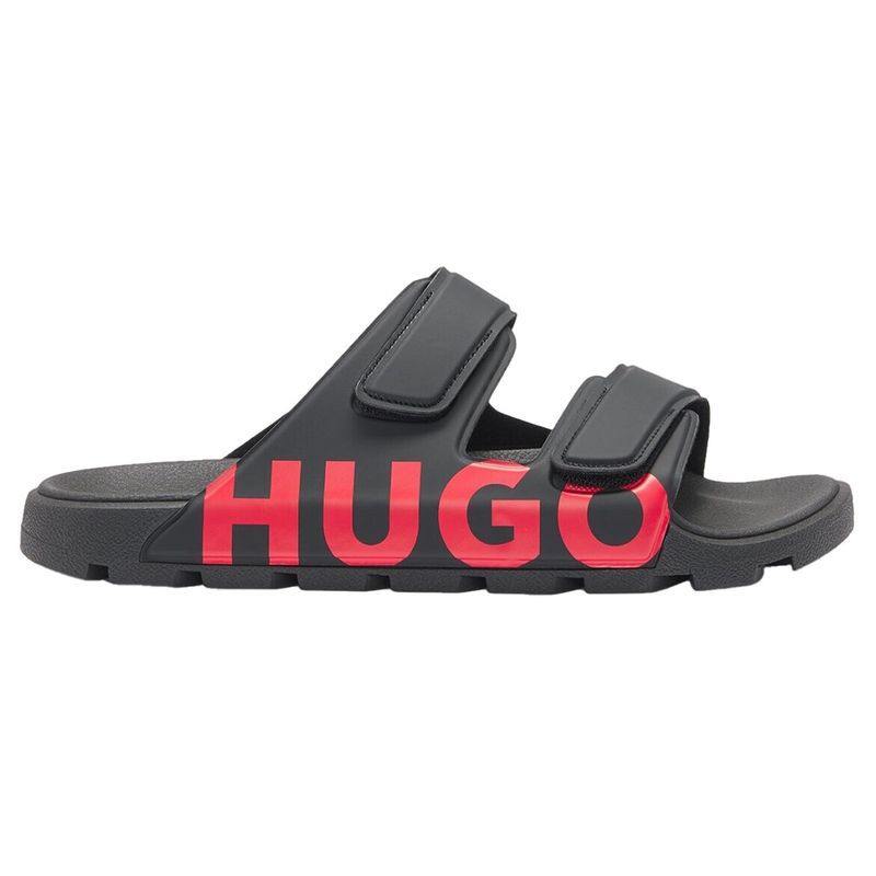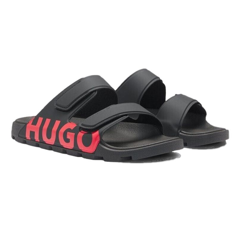 Sandalias Hugo para hombre confeccionadas en una mezcla de cloruro de polivinilo y poliuretano que ofrece resistencia, durabilidad y confort. Presentan diseño moderno con doble correa ajustable mediante velcro y logo Hugo en relieve en el lateral. Su plantilla ergonómica proporciona una pisada cómoda, ideal para el uso diario o para complementar looks casuales de verano con el estilo contemporáneo de la marca.