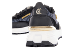 Sneaker Just Cavalli para mujer de estilo urbano y sofisticado, confeccionado con una combinación de materiales sintéticos y cuero que brindan resistencia, comodidad y un acabado de alta calidad. Su diseño en color negro incorpora detalles dorados que aportan un toque elegante y distintivo, junto con texturas modernas que realzan su estética contemporánea. La suela de plataforma ofrece una pisada cómoda y estable, ideal para el uso diario. Perfecto para complementar looks casuales y urbanos con un toque de lujo, este sneaker refleja el carácter audaz y femenino de Just Cavalli. Cuenta con cierre de cordones y refuerzos estratégicos para un ajuste seguro
