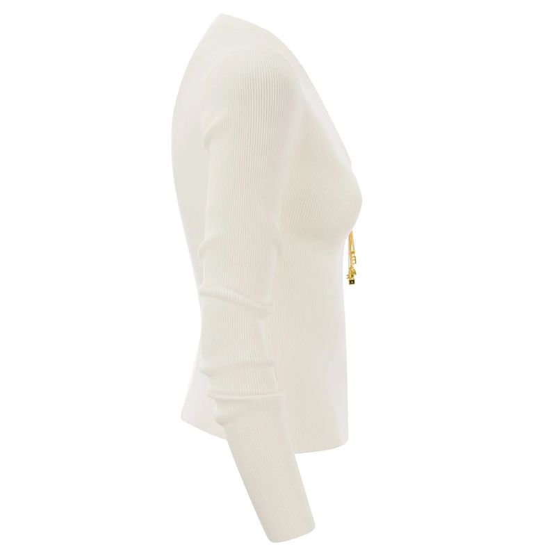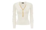 Sweater Elisabetta Franchi blanco con escote en V y collar joya para mujer