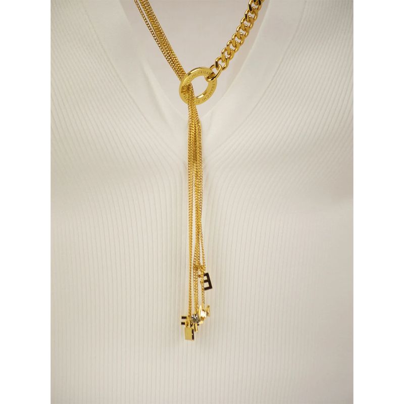 Sweater Elisabetta Franchi para mujer confeccionado en una mezcla de viscosa y poliéster que proporciona suavidad, elasticidad y un ajuste cómodo al cuerpo. Presenta un elegante escote en V profundo que estiliza la silueta y se realza con un collar joya metálico integrado en tono dorado, aportando un toque sofisticado y distintivo. Su diseño de manga larga y su acabado en color blanco lo convierten en una prenda versátil y rinada, ideal para looks formales, estilismos de noche o conjuntos elegantes de día. Una pieza icónica que rleja la elegancia contemporánea y el ADN glamuroso de Elisabetta Franchi