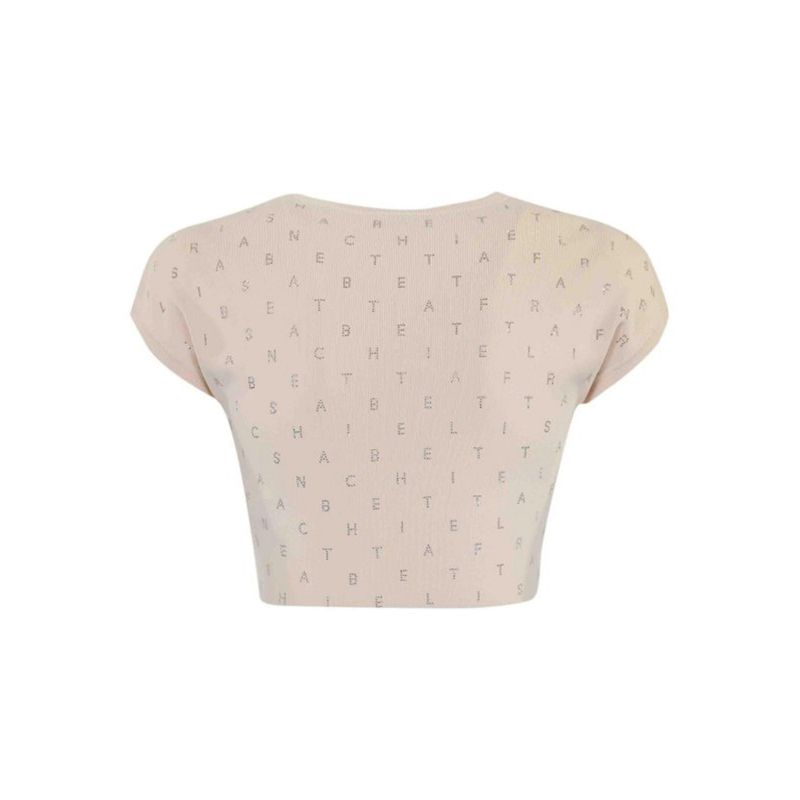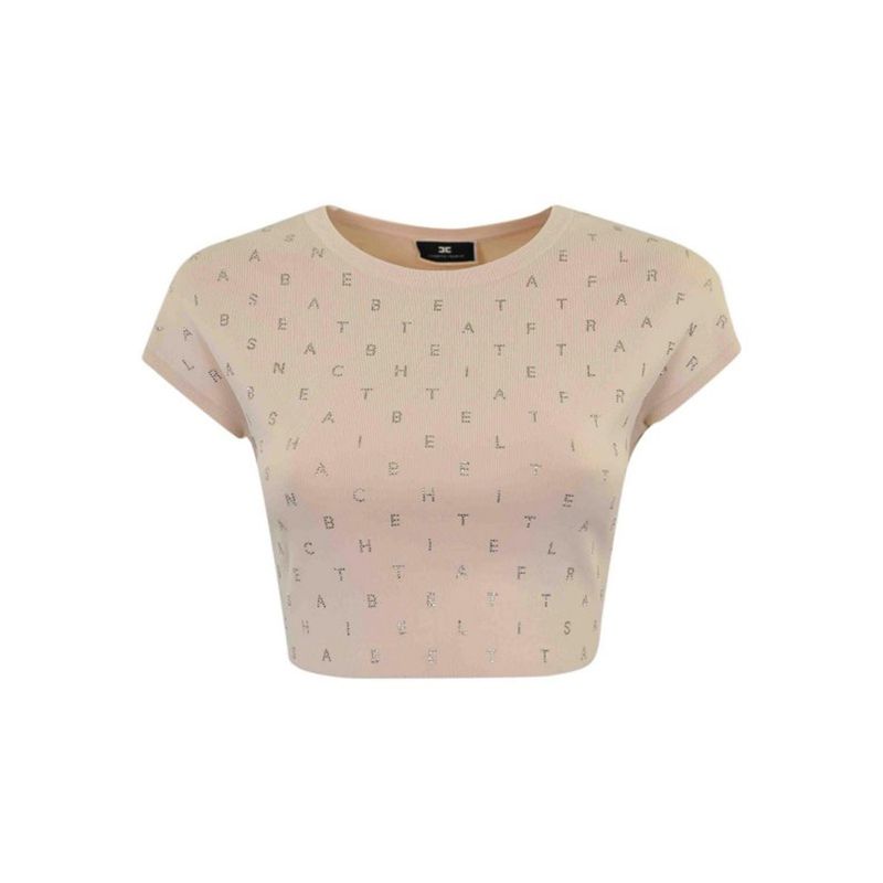 Sweater Elisabetta Franchi para mujer confeccionado en una mezcla de viscosa y poliamida, que ofrece suavidad, ligereza y excelente ajuste. Presenta un corte recto de silueta cómoda, cuello redondo y mangas cortas que aportan frescura y versatilidad. Su diseño se distingue por el patrón de letras en relieve distribuidas por toda la prenda, creando un ecto visual elegante y moderno. El color beige añade luminosidad y sofisticación, ideal para combinar con faldas de talle alto, pantalones sastre o denim claro, logrando looks de día rinados o estilismos urbanos con el sello distintivo de la marca italiana