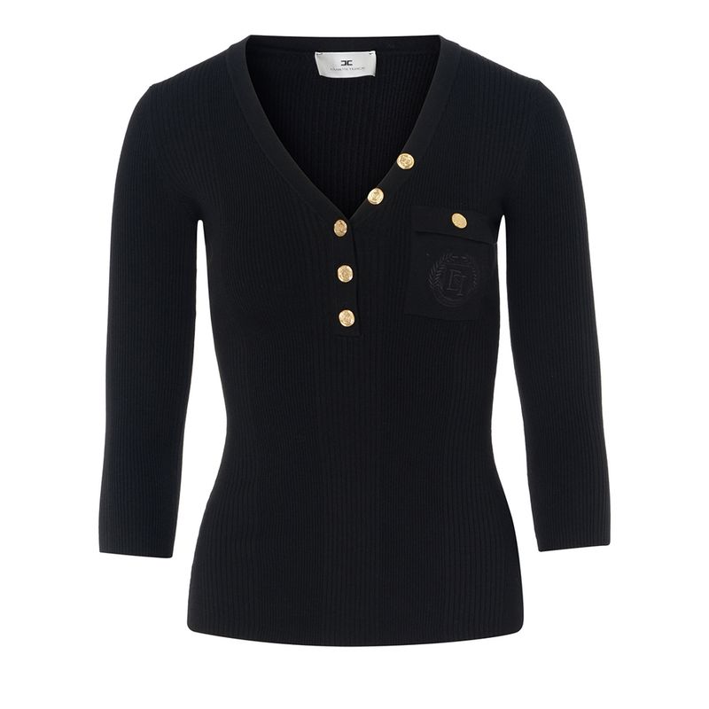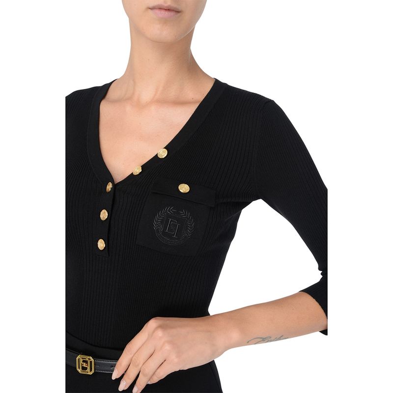 Sweater Elisabetta Franchi negro con escote en V y botones dorados para mujer