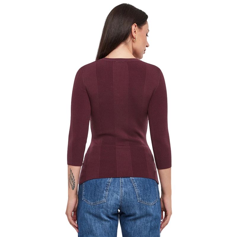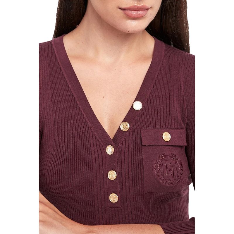 Sweater Elisabetta Franchi vinotinto con escote en V y botones dorados para mujer