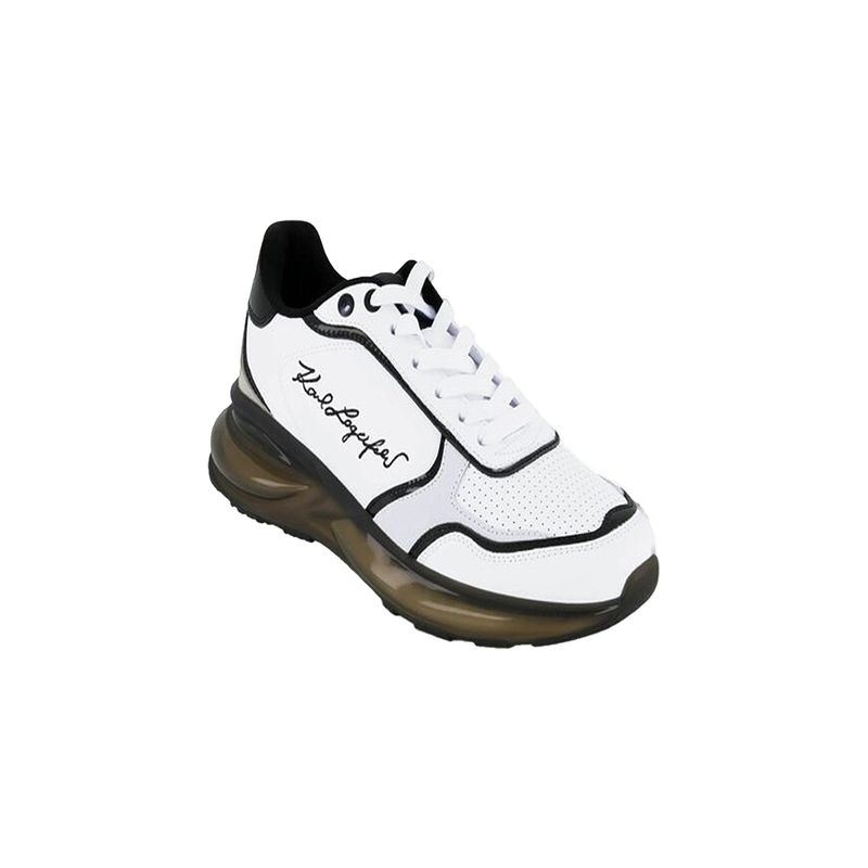 Tenis Karl Lagerfeld para hombre confeccionados en 100% cuero en capellada y forro, ofreciendo calidad premium y confort. Su diseño contemporáneo combina base blanca con detalles negros en contraste y logo de la marca en el lateral. La suela chunky en acabado translúcido aporta un estilo moderno y tendencia actual, garantizando además estabilidad y soporte. Ideales para outfits casuales y urbanos, estos tenis fusionan comodidad deportiva con el lujo característico de Karl Lagerfeld.