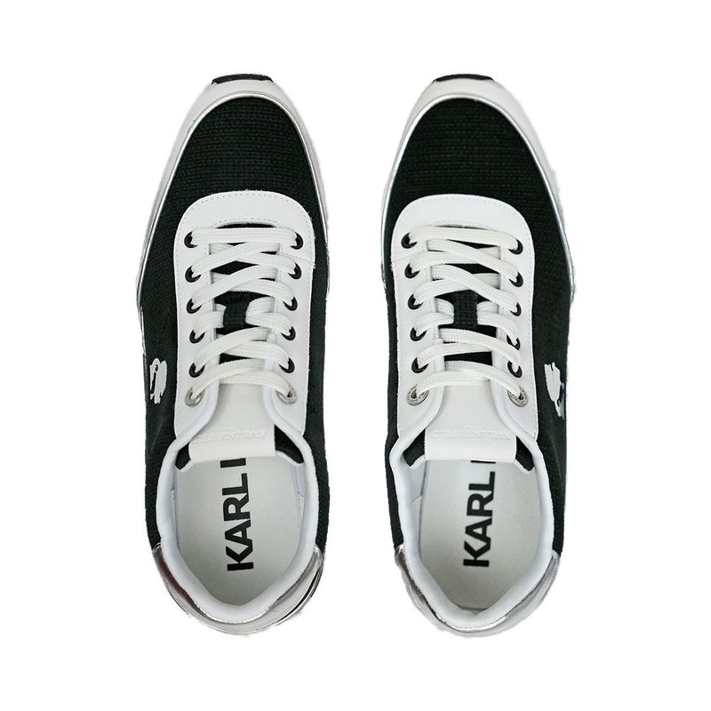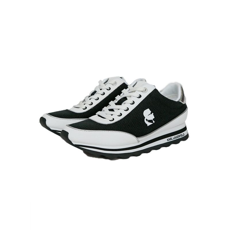 Tenis deportivos Karl Lagerfeld para mujer, confeccionados en combinación de caucho y textil que aportan resistencia, ligereza y comodidad en cada paso. Su capellada bicolor en negro y blanco destaca con el icónico logo lateral de Karl Lagerfeld, mientras que el forro textil garantiza frescura y confort. Incorporan suela de caucho con tracción, cordones ajustables y refuerzos en talón y puntera para mayor durabilidad. Ideales para looks casuales y urbanos, estos tenis fusionan estilo moderno con la identidad exclusiva de la marca.