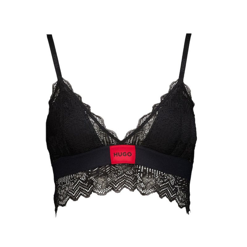 Top Hugo (HU) para mujer confeccionado en un diseño femenino y elegante con encaje floral. Incluye tirantes ajustables y una banda elástica inferior que aporta soporte y comodidad, adornada con un logotipo en contraste que resalta el estilo distintivo de la marca. Elaborado en una mezcla de poliamida y elastano, garantiza suavidad, resistencia y un ajuste flexible. Ideal para looks modernos y versátiles, ya sea como prenda interior o para combinar en atuendos casuales con un toque atrevido y sofisticado.