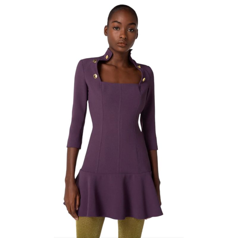 Vestido Elisabetta Franchi corto entallado con botones decorativos y diseño estructurado para mujer