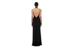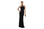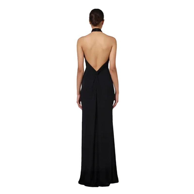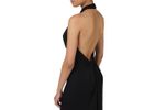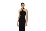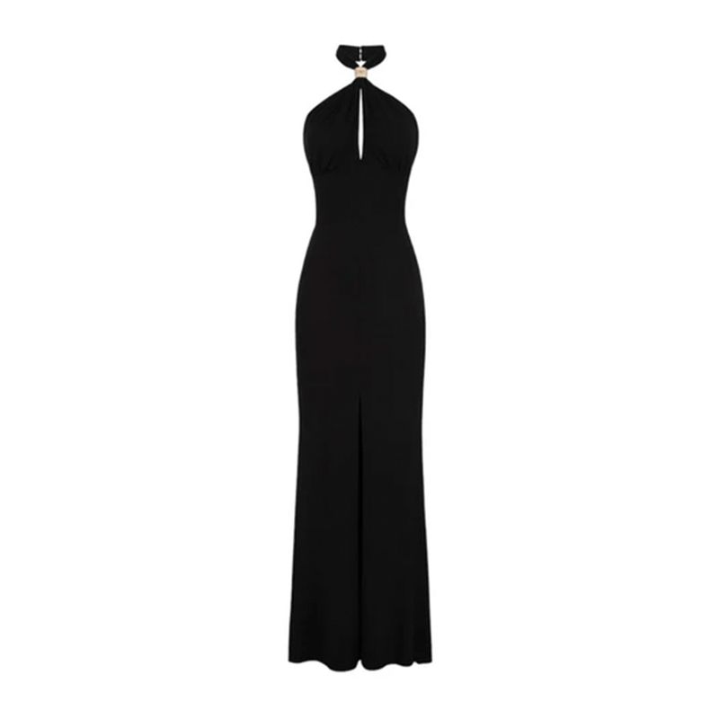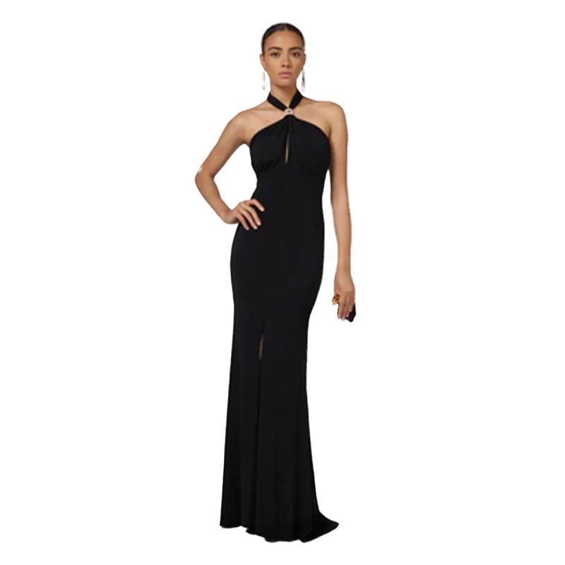 Vestido largo de tejido fluido con cuello halter y corte limpio que realza la figura con elegancia