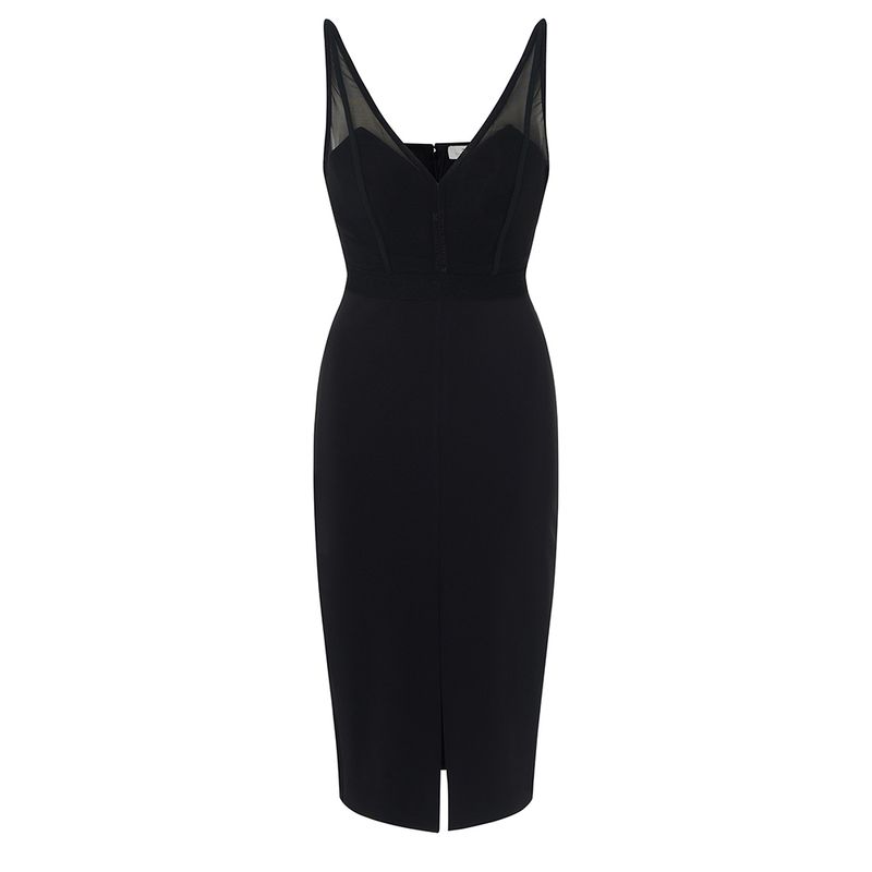 Vestido midi de silueta entallada con delicados detalles en tul que aportan sofisticación