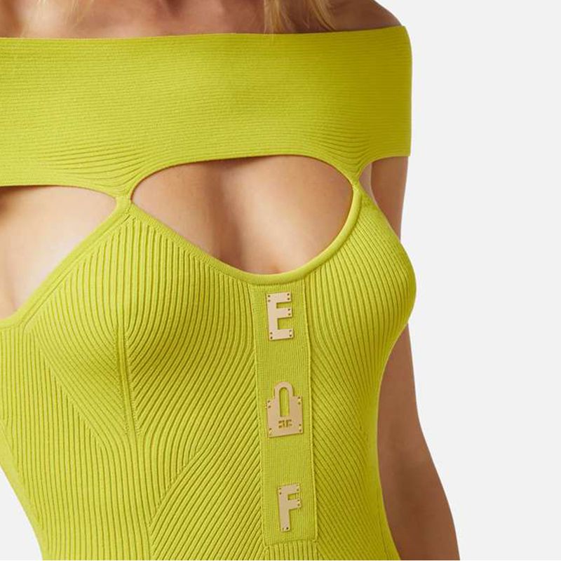 Vestido Elisabetta Franchi tejido ajustado con escote off shoulder y detalle de logotipo para mujer