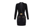 Vestido de corte tipo blazer con bolsillos utilitarios y detalles metálicos que aportan carácter y sofisticación