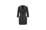 Vestido estructurado con doble botonadura metálica y estampado icónico de la marca