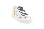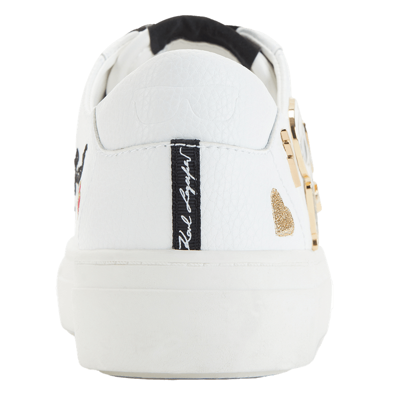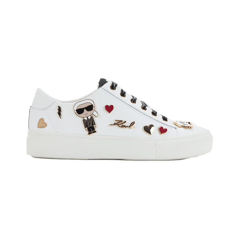 Zapatillas blancas de cuero con apliques decorativos de Karl, corazones y detalles metálicos