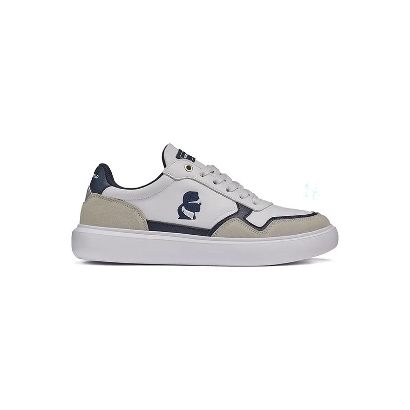 Estas zapatillas Karl Lagerfeld para hombre destacan por su diseño fresco y contemporáneo, elaboradas en 100% cuero para brindar durabilidad y un acabado premium. Presentan una combinación equilibrada de blanco, azul marino y beige, sumando un estilo versátil y moderno ideal para looks casuales y urbanos. El emblemático logo lateral en contraste agrega identidad a la pieza, mientras el forro 100% sintético garantiza confort prolongado. Su suela blanca de perfil clásico ofrece estabilidad y ligereza, convirtiéndolas en la opción perfecta para el día a día con el sello distintivo de Karl Lagerfeld
